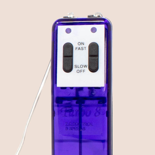 This unassuming toy is one of our most powerful vibrators! Featuring two bullet vibrators powered by a remote control and programmed with multiple functions, the Turbo Double Bullet Vibrator gives you double the fun with a single toy.