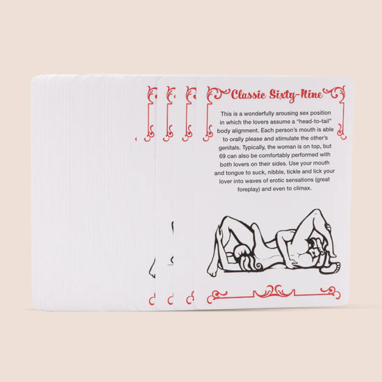 Each of the 54 cards outlines a 'want' : a position or technique that you could try with your partner. Whoever claims a matching pair can choose to talk about it, to save it for later, or to try it right away!