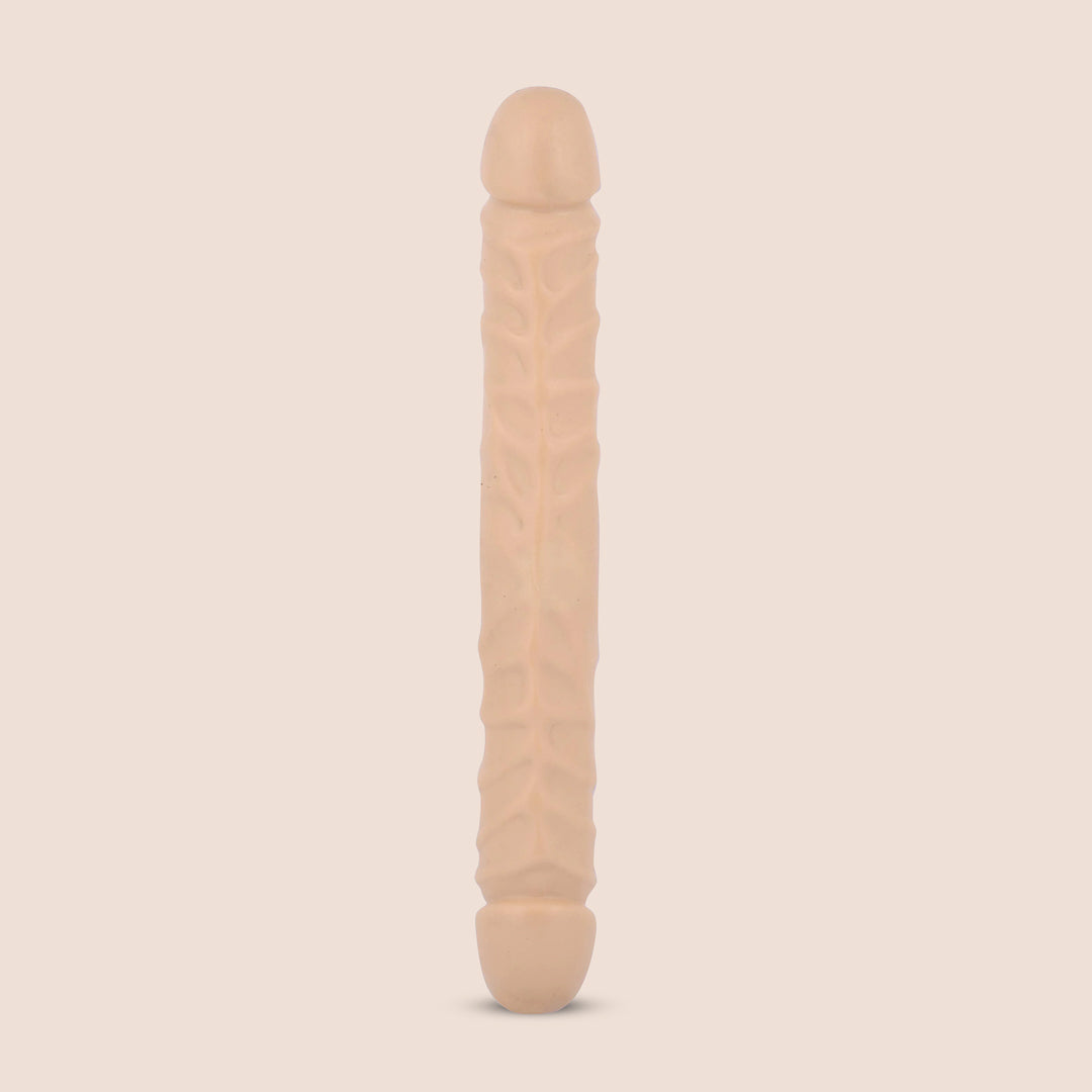The Jr. Veined Double Header is a great, shareable dildo with two identical heads, each styled like the real thing.
