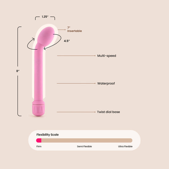 A perfectly angled, upturned head with a smooth oval shape sits atop a slim body, which, once inserted, seeks out the sensitive, nerve-packed upper wall of the vagina with almost no effort on your part.