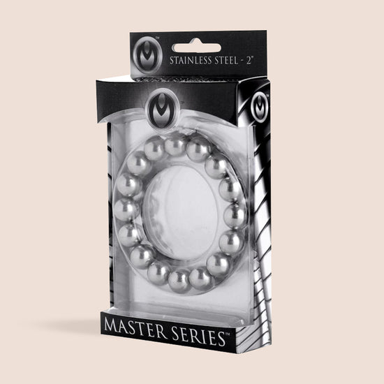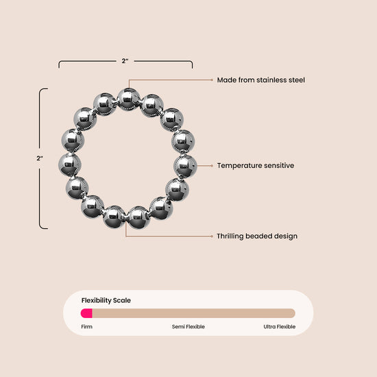 The XR Brands Stainless Steel Beaded Cring is available in two sizes: 1.75 inches (average width) or 2 inches (extra width).