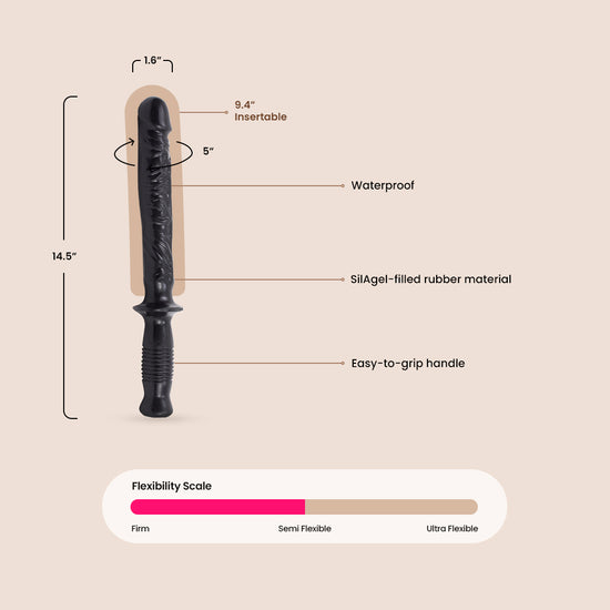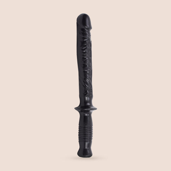 The standout feature of this super-sized dildo is the large, ribbed handle that allows you or your partner a precise, sturdy grip and perfect control.