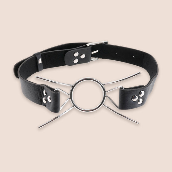 This extreme gag consists of a steel ring with four curved metal legs attached, making sure the mouth stays open s long as you desire!