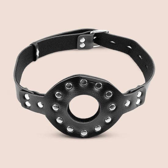 This top of the line ball gag has a realistic black dong on one side of the leather mouthpiece and a ball on the other.