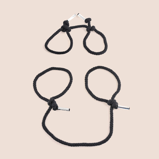 You know you were bound to go there and so let us help you with your very first bondage kit. This kit is perfect for beginner's that want to experiment with being all tied up and at the mercy of each other. The silk ropes are pre-knotted for your convenience, just slip on and tightened to a comfortable fit. A love mask is included to entice the element of surprise - have fun tonight! Includes Adjustable Silk Rope Wrist Restraints and Adjustable Silk Rope Ankle Restraints.