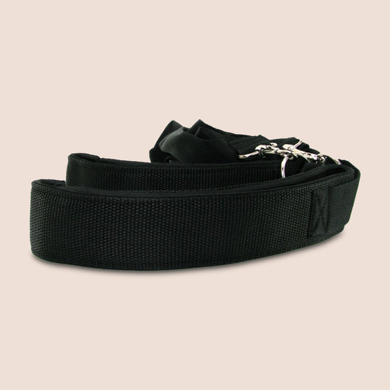 Simply place the harness over your shoulders and snap the adjustable strap just below your chest. The sturdy thigh cuffs clip right to the harness, positioning your legs at the perfect angle for a hard pounding while holding your legs firmly in place so they don't tire when things are heating up. The harness also provides a sturdy grip so your partner can hold on for a wild ride, and features wrist cuffs to ensure that you wont escape anytime soon. All cuffs are easily adjustable to fit most sizes with velcro straps, and the chest harness adjusts with a simple tug. Now assume the position and be the master of your next encounter!