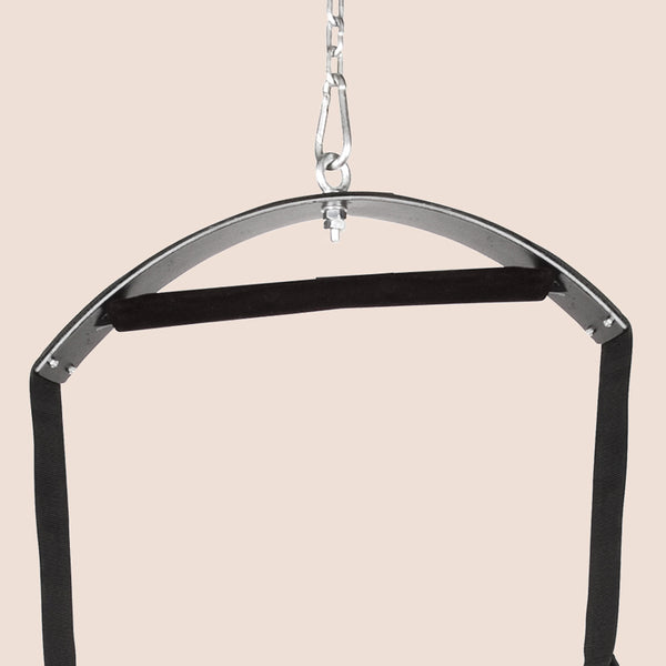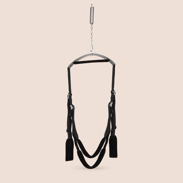 This swing is no lightweight; it can handle anything you throw at it (or on it). With adjustable straps to securely hold your bodies in place, you'll be able to reach positions you never thought possible. Legs up, upside down, sideways—let your imagination run wild as you explore the full potential of pleasure.