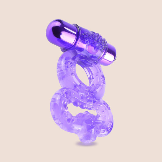 This fun teaser will produce explosive results and is the perfect add-on to any spontaneous encounter! The powerful bullet provides amazing vibrations for your partner, while the super-stretchy rings help maintain thicker, harder erections. Try the ring in the shower and turn bath time into play time! The top ring squeezes your shaft, while the lower ring wraps snugly around the base of your balls. Use one ring, or both, for maximum comfort and ultimate constriction. This incredible ring is ready to go right out of the package!