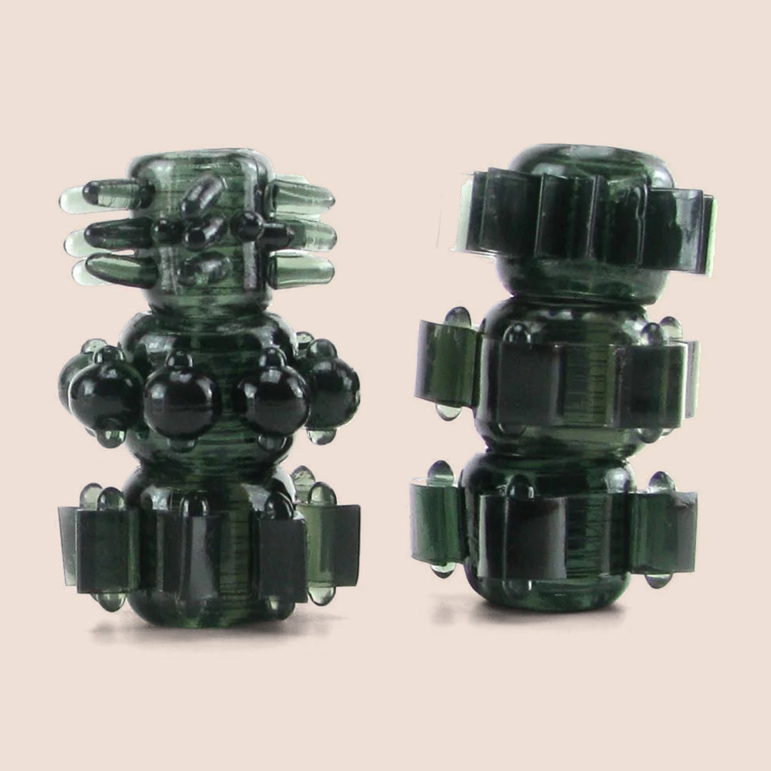 Stretchable enough to fit anyone, this set includes 6 thrilling designs. Their nubs and points will delight any lover with firm internal sensations!