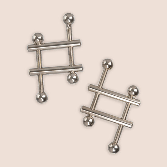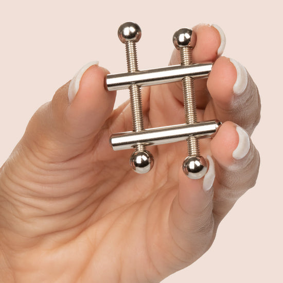 The fully adjustable crossbar design lets you control the pressure. Screw the crossbars closer together for a tight fit, or move them further apart for a looser fit. These nipple vices offer a totally customizable pleasure experience, and the fully-adjustable design allows for use on all body types.