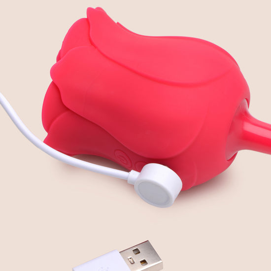 Blossom with pleasure with our Bloomgasms Sucking and Vibrating Rose! This little flower packs a powerful punch with its air pulsing and vibrating capabilities. Whether you want to stimulate your clit or nipples, this handy toy has got you covered with 5 air stimulation modes and 7 vibration functions. Plus, it's made with plush and addicting silicone and is phthalate-free for worry-free playtime. And with its IPX5 splashproofing, you can even take it in the shower for some steamy fun. And when it needs a pick-me-up, just use the included USB charging cable to keep this Rose at its peak performance. So go ahead and explore your sexuality with this naughty little flower - we promise you won't be disappointed!