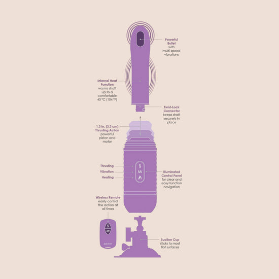 She pressed the button to activate the warming mechanism. Mmmmm, she loved that it warmed up to a soothing 104 degrees. The warmth made it feel just like a real companion. She used the locking suction cup to position her Thrust-her exactly where she wanted it. She found herself becoming wet just thinking about how good it was going to feel. She probably wouldn't even need lube, although she rubbed the top of the Thrust-her with it just in case.