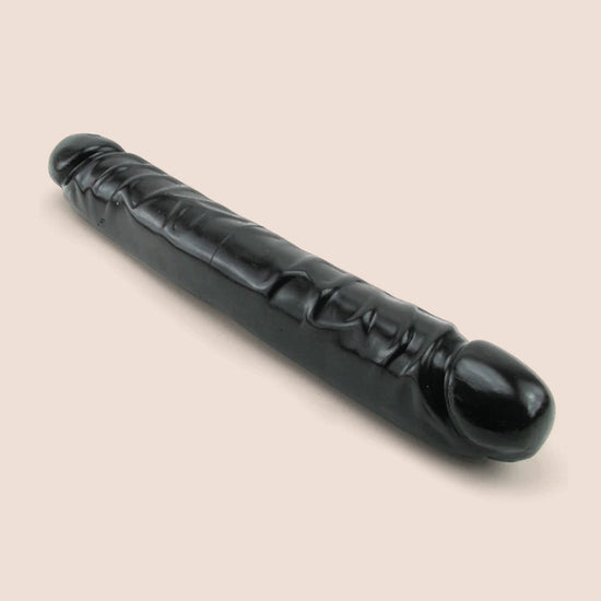 Double Header Dong is the ultimate sex toy for shared orgasmic pleasure. Each end of this tantalizing dildo features a realistic tip, joined in the middle by a luscious, lifelike black shaft, complete with bulging veins. It's like two dongs in one!