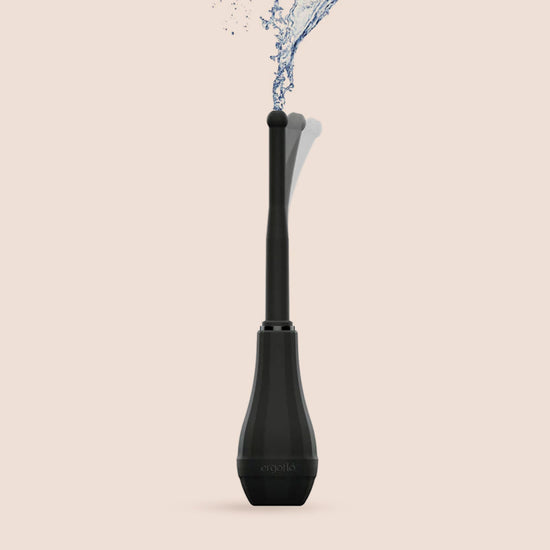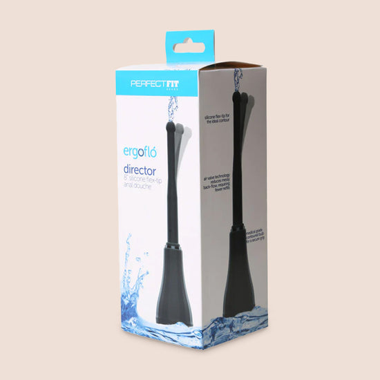 The ergoflo™ director anal douche comes with a medical grade 9 oz. contoured bulb featuring air valve technology that reduces messy back-flow and requires fewer refills. Director comes with an 8” (20 cm) silicone flex-tip nozzle, and a 3” (8 cm) stowaway tip.