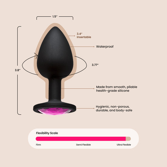 Add some beauty to your booty! Choose from three different gem colors in trendy pastel shades that sparkle brightly and contrast with the black silicone to visually stimulate your partner. Booty Bling's flared base ensures safe play and the tapered tip, thin stem, and classic spade shape of these smooth, pliable, health-grade silicone plugs make them feel as good as they look.