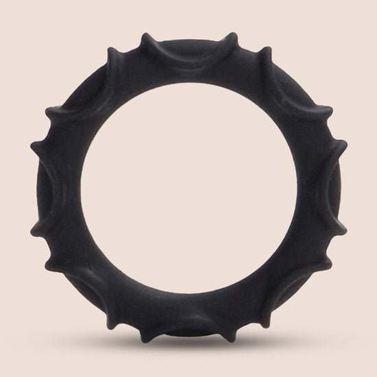 Made from pure silicone that creates a firm grip while warming to body temperature for a natural feel, Adonis Silicone Rings are sturdy, comfortable and ultra effective. C rings work by keeping blood in the penis once its erect, they can also help with endurance, since the slightly constricted sensation helps to keep the wearer under control. For whoever's on the receiving end, a ring can provide extra stimulation to the clit or perineum, since it'll add a little more surface area and extra texture. The Atlas version of the Adonis ring has a pattern or little raised cups overtop, it's extra stretchy and super smooth, plus, as mentioned, it'll warm to body temperature with use, making it feel natural for both partners. The high end pure silicone is extremely hygienic, with a nonporous surface that's very easy to clean and sterilize; silicone is also hypoallergenic and body friendly, perfect for anyone with sensitive skin. Use a good quality water based lube if needed with the Adonis rings to keep the material strong. Fits most.