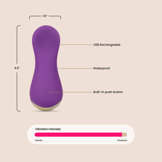 Use the smooth single button control to enjoy up to 1.5 hours of vibrating pleasure. Charge up your passion in only 2.5 hours by plugging the provided USB cable into the self-sealing charging port on the back of the massager. The slim massager discreet 4-inch size makes it the perfect travel companion, letting you embrace radiating pleasure wherever your fantasies take you.