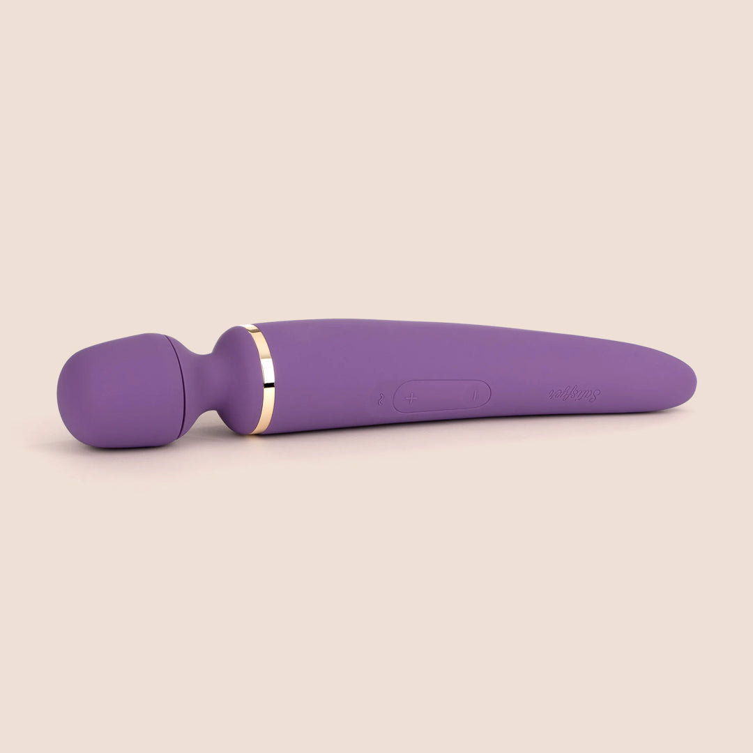 The Satisfyer Wand-er Woman Rechargeable Wand Vibrator solves problems, relieves tension, and scratches any orgasmic itch, thanks to its impressive XXL size and the hidden power behind its seductive silicone head.