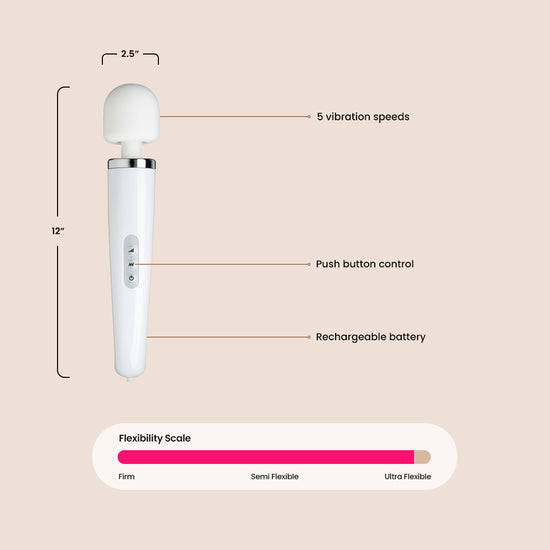 Designed with a flexible silicone head, the wand can curve to hit the right spot every time and make handling the wand more comfortable for you. With simple controls on the handle, you can easily switch up the vibration modes.