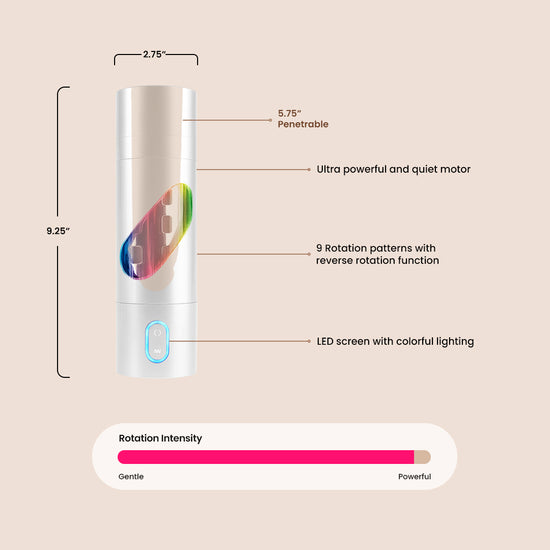 The reverse oration button instantly changes direction of the spinning pleasure sleeve, allowing you to experiment with endless pleasure combinations every time you use it. It's engineered like no other masturbator on the market, with independent controls for function and rotation direction.