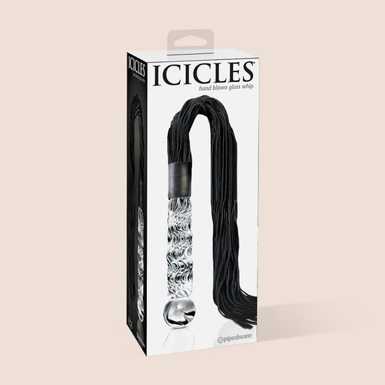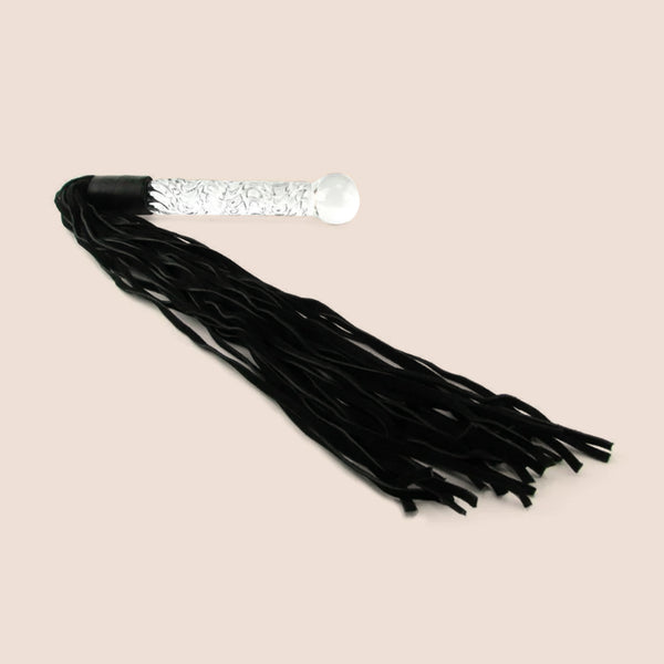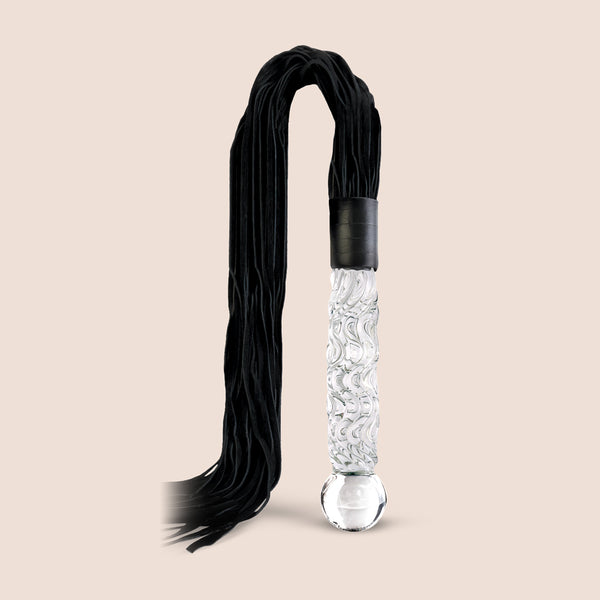 Take your bondage to the next level with this beautifully crafted, stylish glass dildo with an attached suede leather flogger!