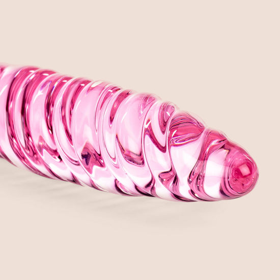 Enjoy double the fun with this elegant double-sided glass massager. Each end features a tapered tip to ease insertion while cleverly curved for explosive G-Spot or P-Spot stimulation. Either end boasts unique textures--a bulbous head and a ribbed swirl--that offer endless possibilities for pleasure! The hypoallergenic glass is nonporous, body safe, and, when cared for properly, is designed to last a lifetime.