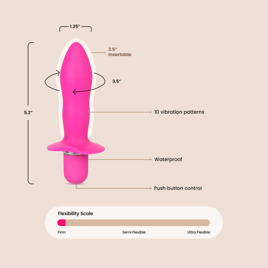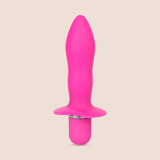Enjoy endless pleasure with the Booty Call™ Booty Rocket™, a smooth probe complete with 10 massage settings. This is an advanced size probe, designed for full prostate stimulation and personalized pleasure. The tapered shaft allows you to work your way up at your own speed while the 10 unique vibration settings give you complete control of the vibrating probe. The smooth silicone probe is safe and comfortable to use, measuring 4.75”in length and 1.25” in width and its pliable nature gives you flexibility of movement plus easy application and retrieval; complete with a tapered shaft, you can personalize your own prostate pleasure and enjoy the different stimulation with each area of the probe. The 10 different pleasure settings include a series of vibration, pulsation, and escalation so you can tease, play and tantalize with a choice of changing sensations. With a simple one button control, the vibrating probe is easy to use, either one your own or with a partner and the push button system gives you complete control of the probe and its massaging vibrations.