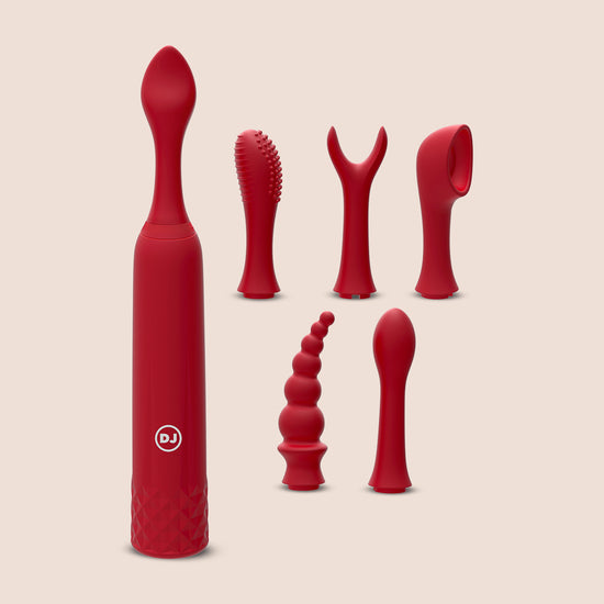 The iVibe Select iQuiver is an innovative petite vibrator with 6 interchangeable heads, each of which provide a unique feel. The vibrator flaunts 10 vibrating patterns, which allow for a total of 60 individual sensations. The iQuiver's small size and various head shapes make it multi-functional, able to stimulate many erogenous zones. It is available in Periwinkle and Red Velvet.