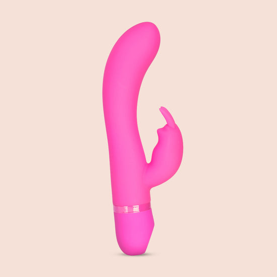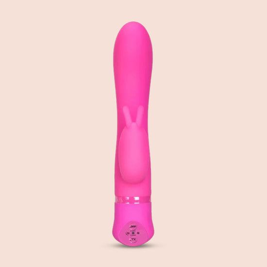 The versatile massager is made from soft and smooth, phthalate free premium silicone, and measures 4.5” x 1”/11.5 cm x 2.5 cm. The sleek shaft is sensually contoured for ultimate comfort and extended reach and features an angled, rounded tip and a bunny shaped clitoral teaser. Dual motors power up the pleasurable vibrations that deliver unforgettable sensations to your sweet spots and erogenous zones.