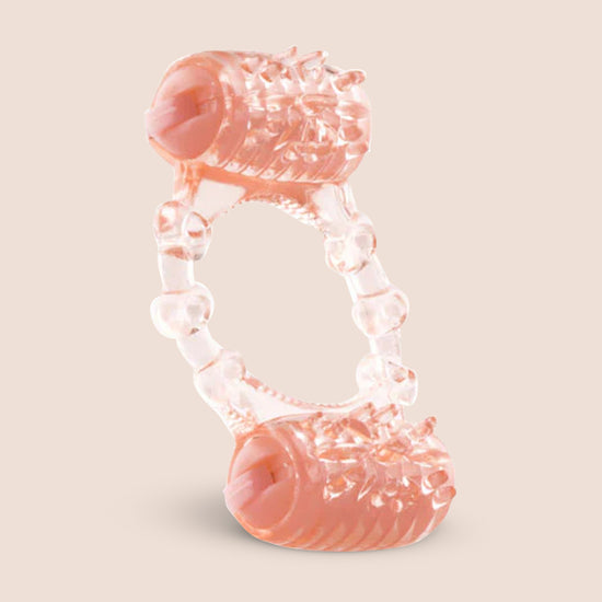 The Two-O® vibrating ring features two mini motors attached to a super-stretchy and comfortable ring that gives couples simultaneous stimulation for more satisfying sex. Simply stretch the ring around the shaft and testicles with the motors positioned above and below to ensure perfect placement. The top motor vibrates against the clitoris with every movement while the bottom motor buzzes against his testicles for mutual pleasure and enhanced orgasms with ease! Switch each motor on and when the batteries run out, simply toss the Two-O away and leave the evidence behind!
