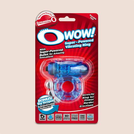 The O Wow vibrating ring features a super-powered bullet to give couples the ultimate intimate experience for mutual satisfaction. With extended pleasure ticklers for enhanced sensations and a stretchy, comfortable band, the O Wow is sure to Make Love More Fun™.