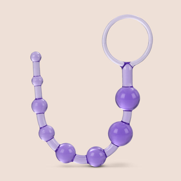 These slim and petite anal beads are a great, non-threatening way to satisfy your curiosity. The very manageable 8 inch length, with firm beads in gently graduated sizes, starts you off at under 1 inch and ends at a delicious 2.5 inches.