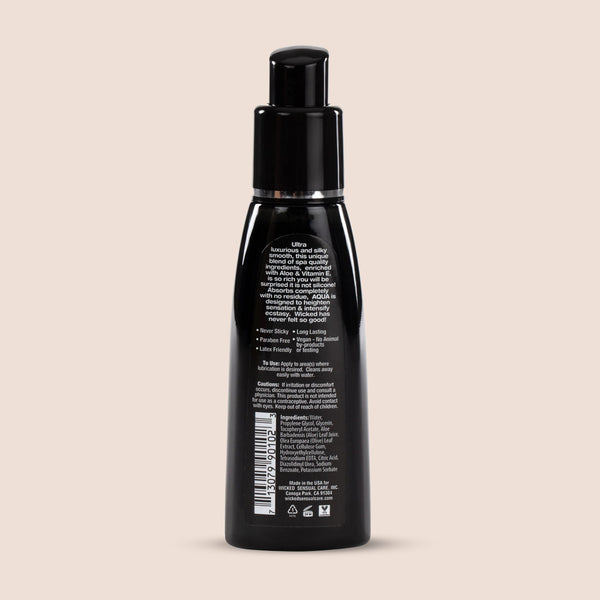 Aqua Water-Based Lubricant is so rich you will be surprised it’s not silicone. Incredibly luxurious and silky smooth, this personal lubricant is crafted with a unique blend of spa quality ingredients and is enriched with Aloe, Vitamin E, and Olive Leaf extract. This long-lasting water-based lube ensures that you have more than enough moisture for extra cushion to enjoy your pleasure pursuits. Heighten sexual sensations with the Wicked Aqua Lube!