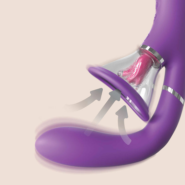 But wait—there’s more! In tandem with the tongue and suction action, a flexible g-spot vibrator provides powerful internal vibrations, sending waves of pleasure right where you want them! It’s an incredible 4-in-1 joyride that you’ll never want to end. What are you waiting for? Take the tantalizing trip today!