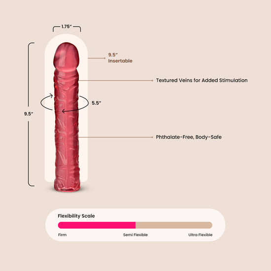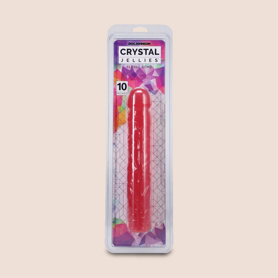 This flexible yet firmly pleasing dildo boasts a satisfying 10 inches of insertable length and a pliable, lifelike-feeling jelly body that's designed to look and feel like the real thing, sure to please you many times over.