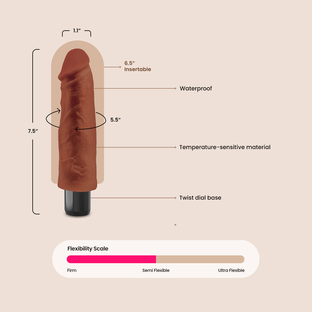 Enjoy the lifelike texture of the Real Feel No. 1 7.5 Inch Dildo Vibrator! This sensual and multi-functional sex toy lets you indulge in all kinds of erotic sex play.