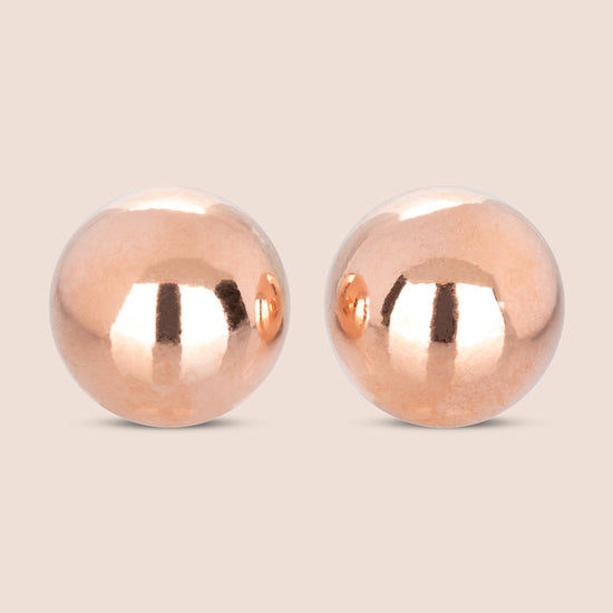 The blushing Climax Weighted Balls™ are sculpted to naturally increase stimulation, improve sexual satisfaction and increase pelvic muscle strength. Increase sexual arousal and delightful stimulation as the petite weights ripple in harmony with your every movement. Naturally tone and tighten pelvic muscles to improve orgasm intensity and reduce risk of incontinence. The carbon-free steel is electroplated for a blushing copper color. Each weight diameter measures 0.75” (2 cm).