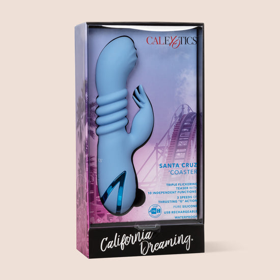 Feeling a little stuck in a rut in the bedroom? Let the California Dreaming® Santa Cruz 'Coaster give you the thrust you need to shake things up. This sex toy comes equipped with a flickering teaser and a thrusting vibrator that will make you feel like you're experiencing nature's finest. Perfect for solo play or couples, this massager has a powerful G-spot stimulator and three speeds of independent thrusting. Plus, with 10 functions of escalating vibration and a memory chip that remembers your favorite setting, you'll always be ready to go when the mood strikes.